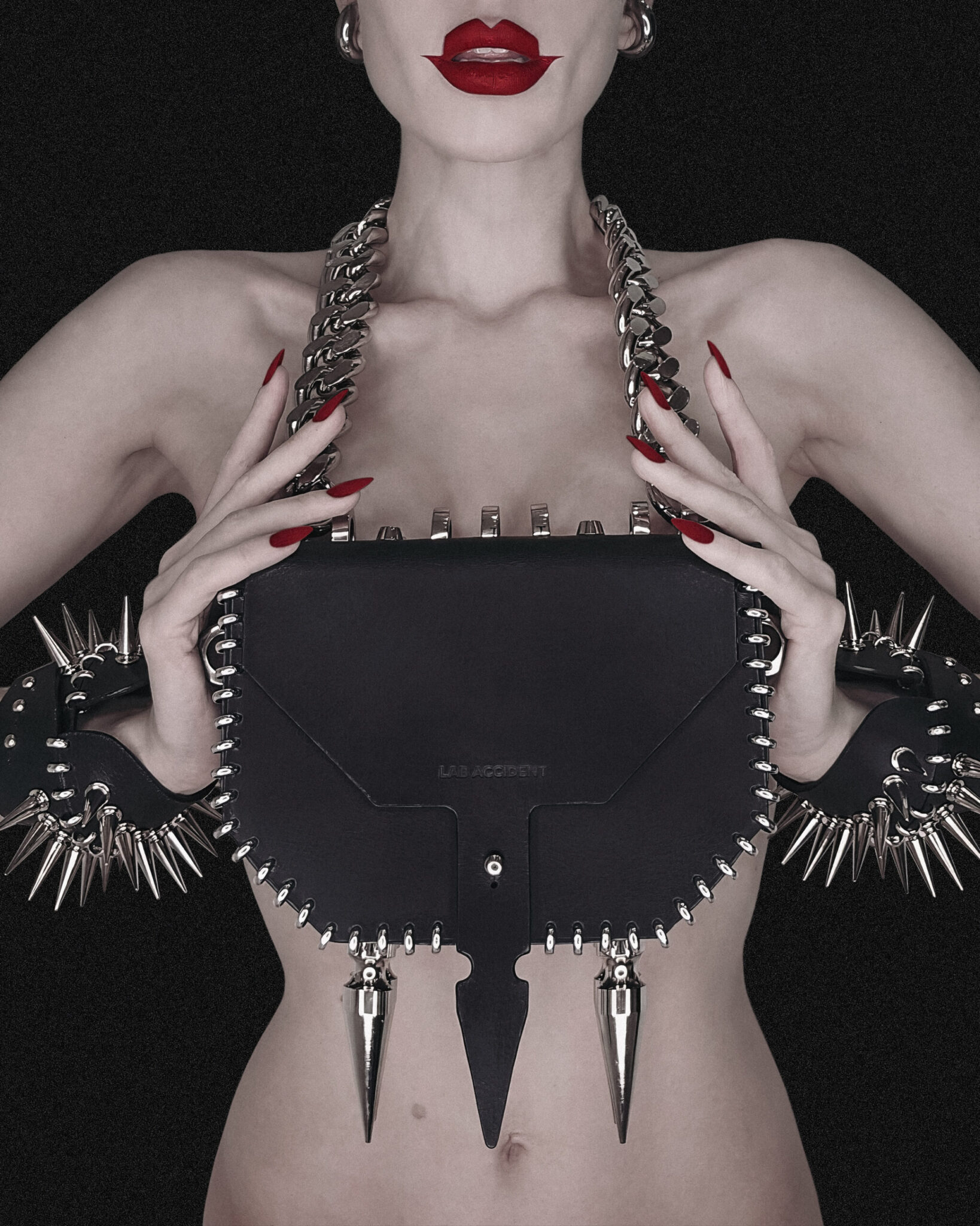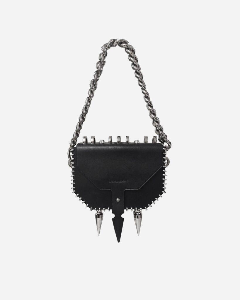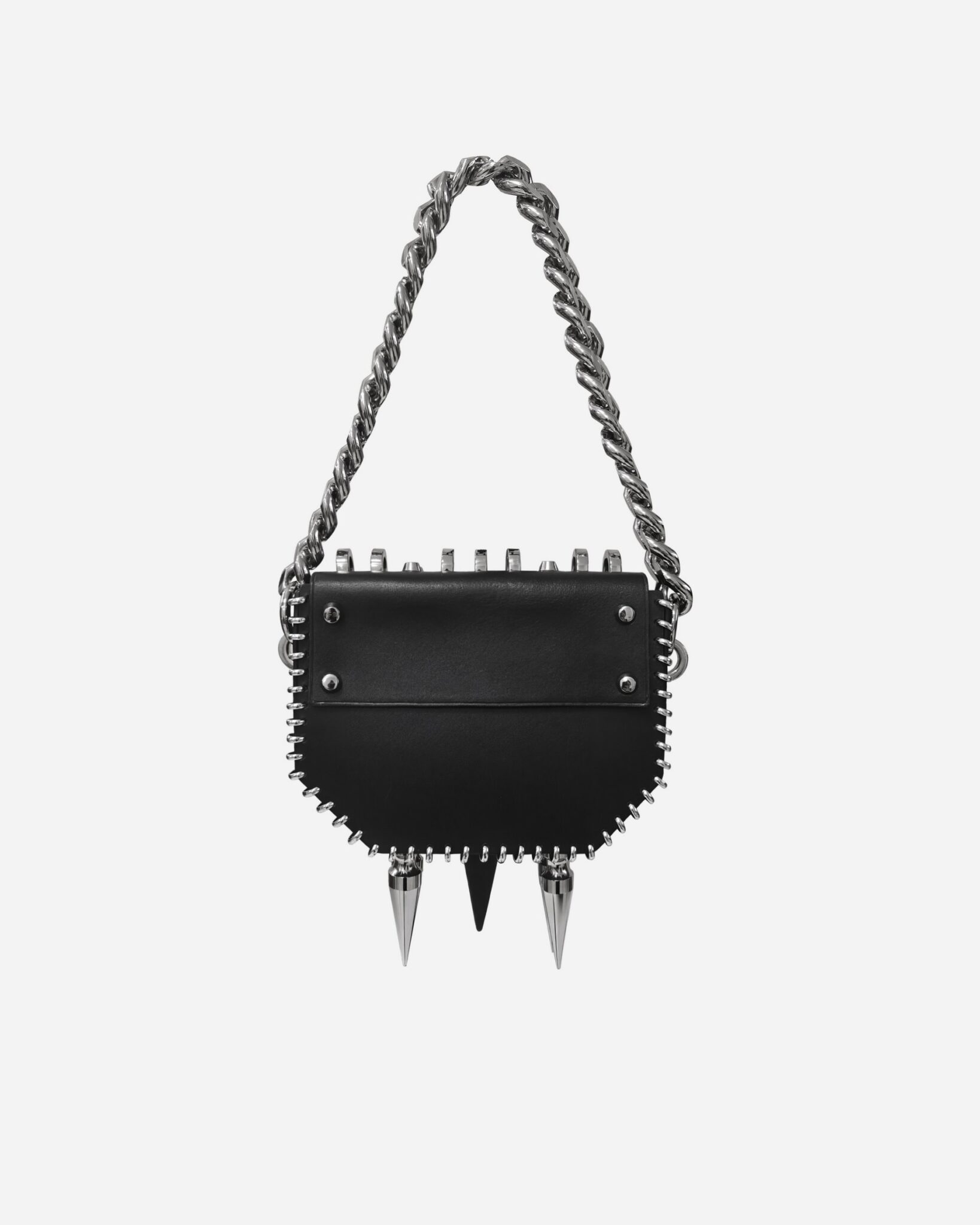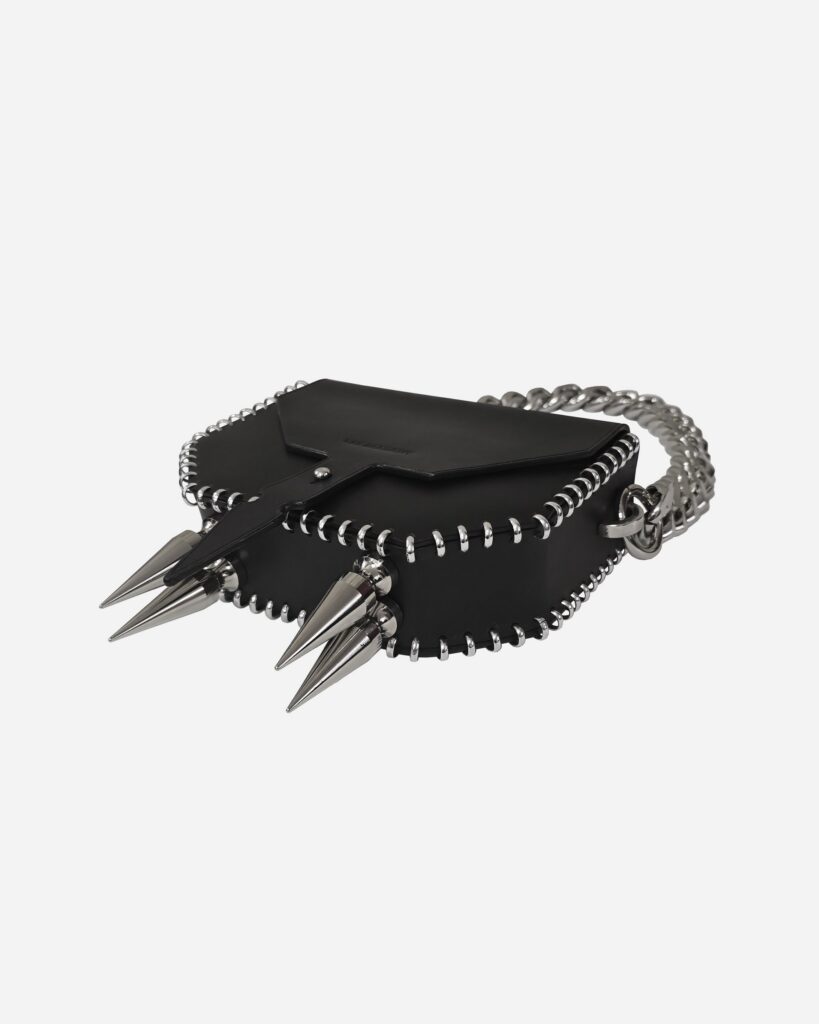 A leather bag adorned with our signature metal stitching and bold metal spikes. Crafted from premium Italian leather or rubber, this piece draws inspiration from the infamous 17th-century figure La Voisin, a fortune teller and poisoner whose dark legacy continues to intrigue. <span class="relative -mx-px my-[-0.2rem]…