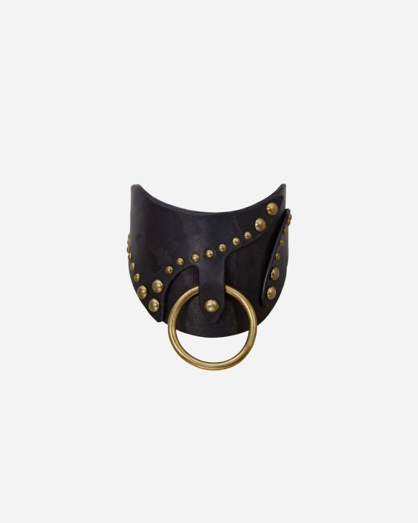 A luxurious leather collar inspired by the powerful and enigmatic enchantress from the legend of King Arthur. Crafted from premium Italian leather, its asymmetrical design features two meticulously layered materials, creating a striking three-dimensional effect that embodies Morgana’s dual nature of grace and defiance.