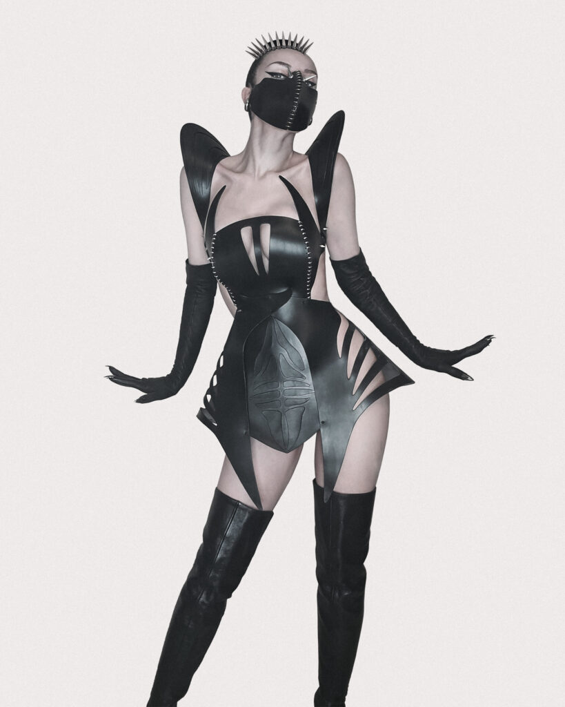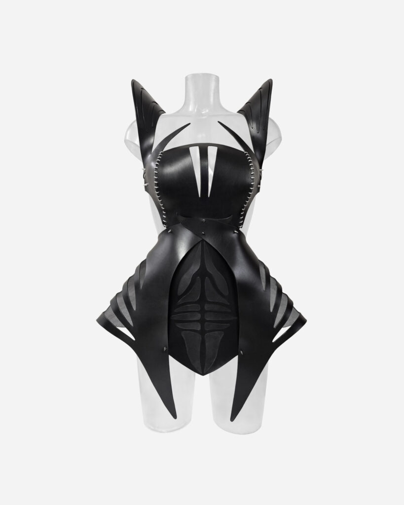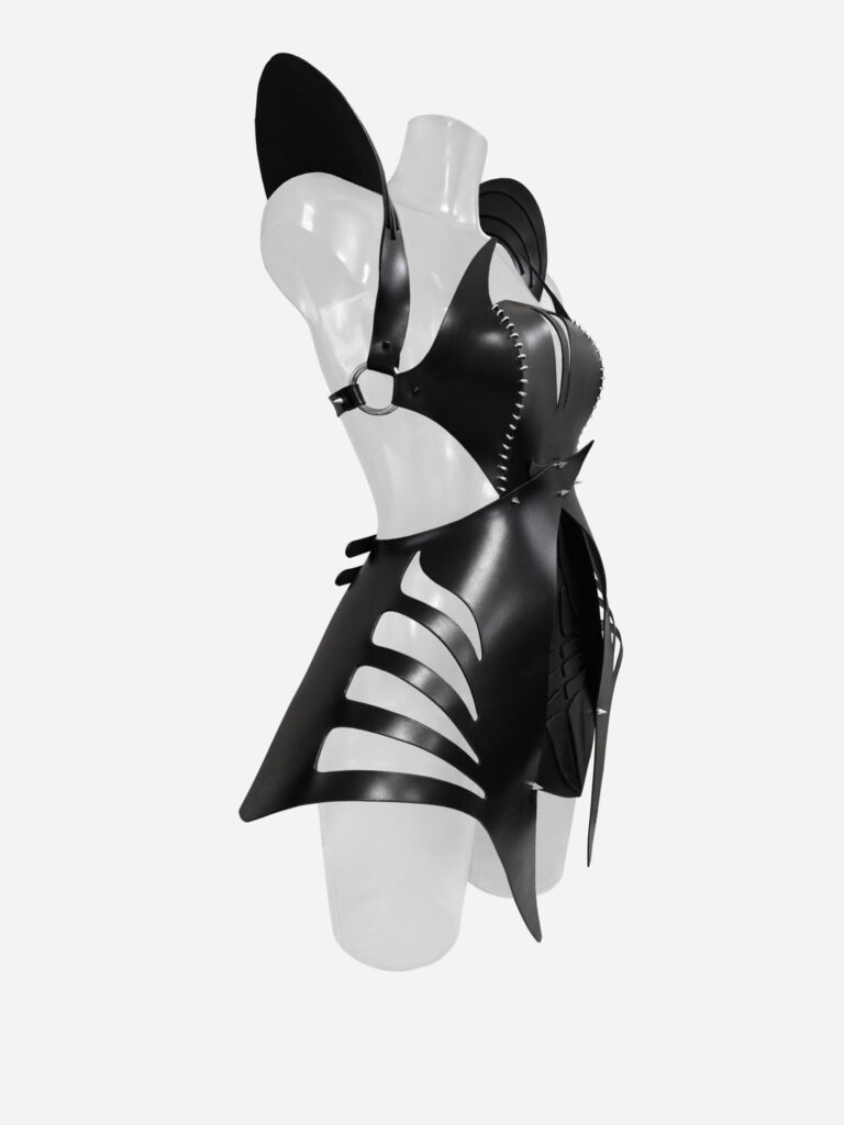 Summoned from the shadows of another galaxy, X-MORPHIA is not just a dress — it’s a transformation. Inspired by a ruthless alien supervillainess with elegance sharp enough to wound, this avant-garde creation fuses high fashion with interstellar menace. Sculpted from ethically sourced, Italian, saddlery leather, X-MORPHIA is tailored to command. Our signature…
