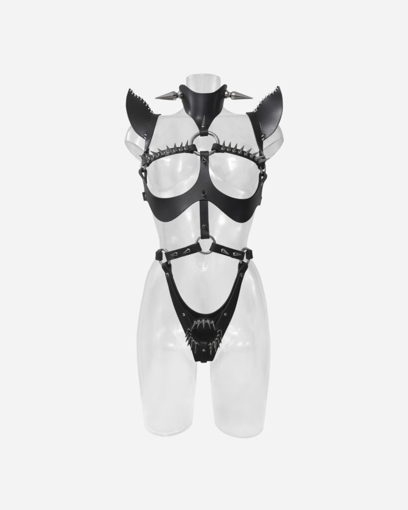 For the otherworldly femme fatale who doesn’t ask twice. This upgraded cult favorite is forged in ultra-premium leather, laced with my signature metal stitching, and armed with unapologetically bold shoulder architecture. The spiked crotch hoop? A warning, not a detail. Designed for the villainess who conquers dimensions and collects hearts (in jars). Each piece is…