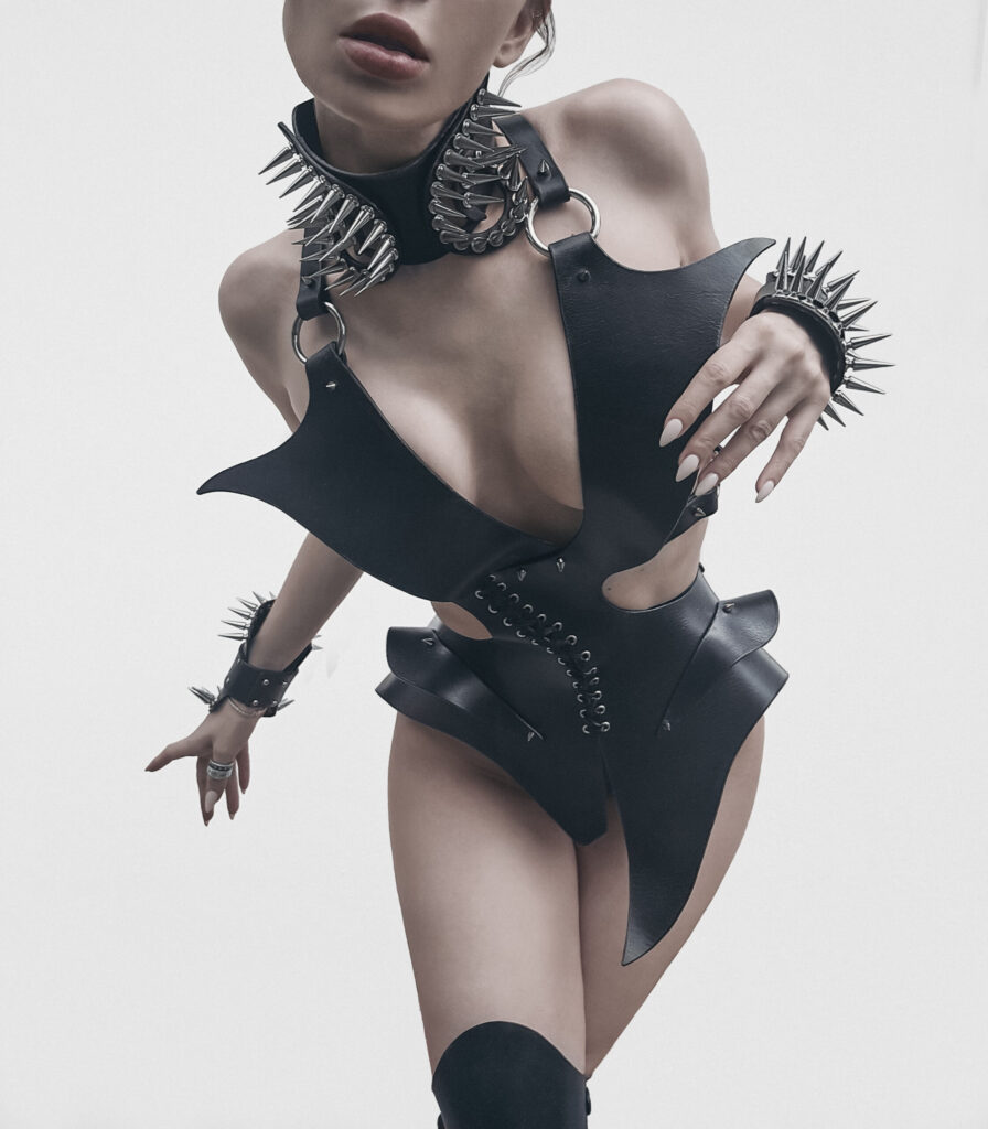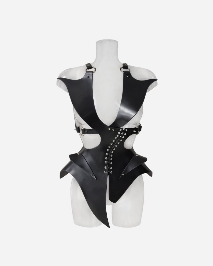 A dark seductress reimagined. Inspired by the iconic Thierry Mugler 1992 couture collection, this leather piece drips with power and precision—sharp lines, fierce energy, and femme fatale attitude.