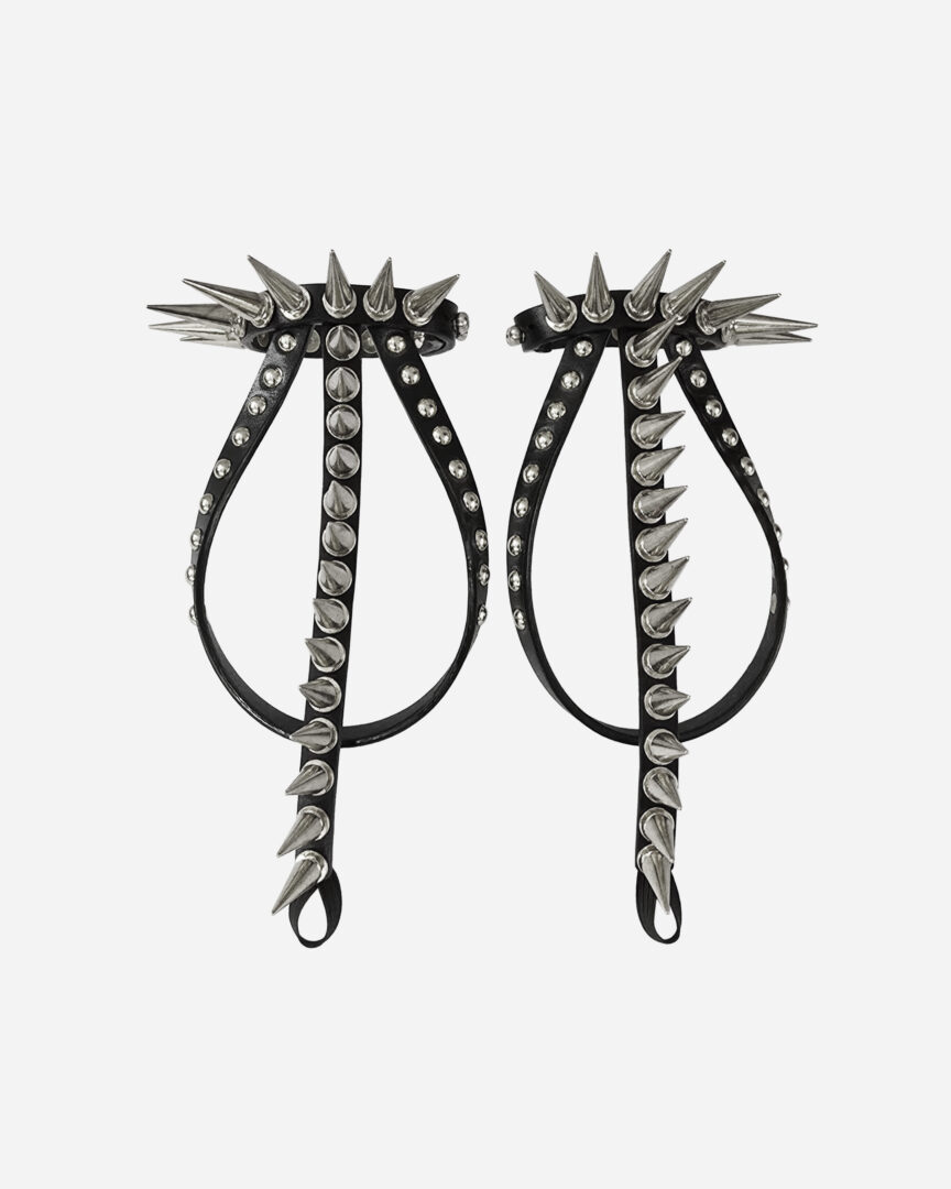 Forged for the supreme supervillain who doesn’t just walk into a room—she dominates it. FORBIDDEN is a leather-bound enigma, hand-crafted with unapologetic precision and laced with metal spikes sharp enough to pierce egos. This avant-garde stiletto harness isn’t just footwear—it’s a weapon of obsession, designed for the femme fatale who worships heels like…