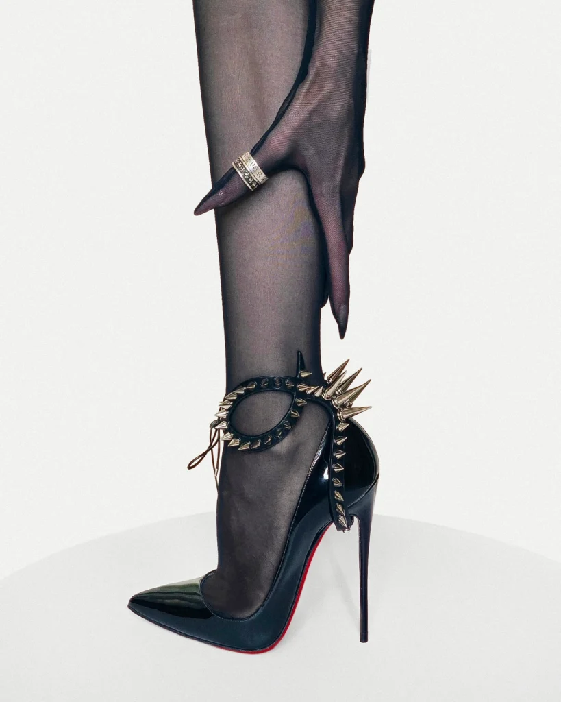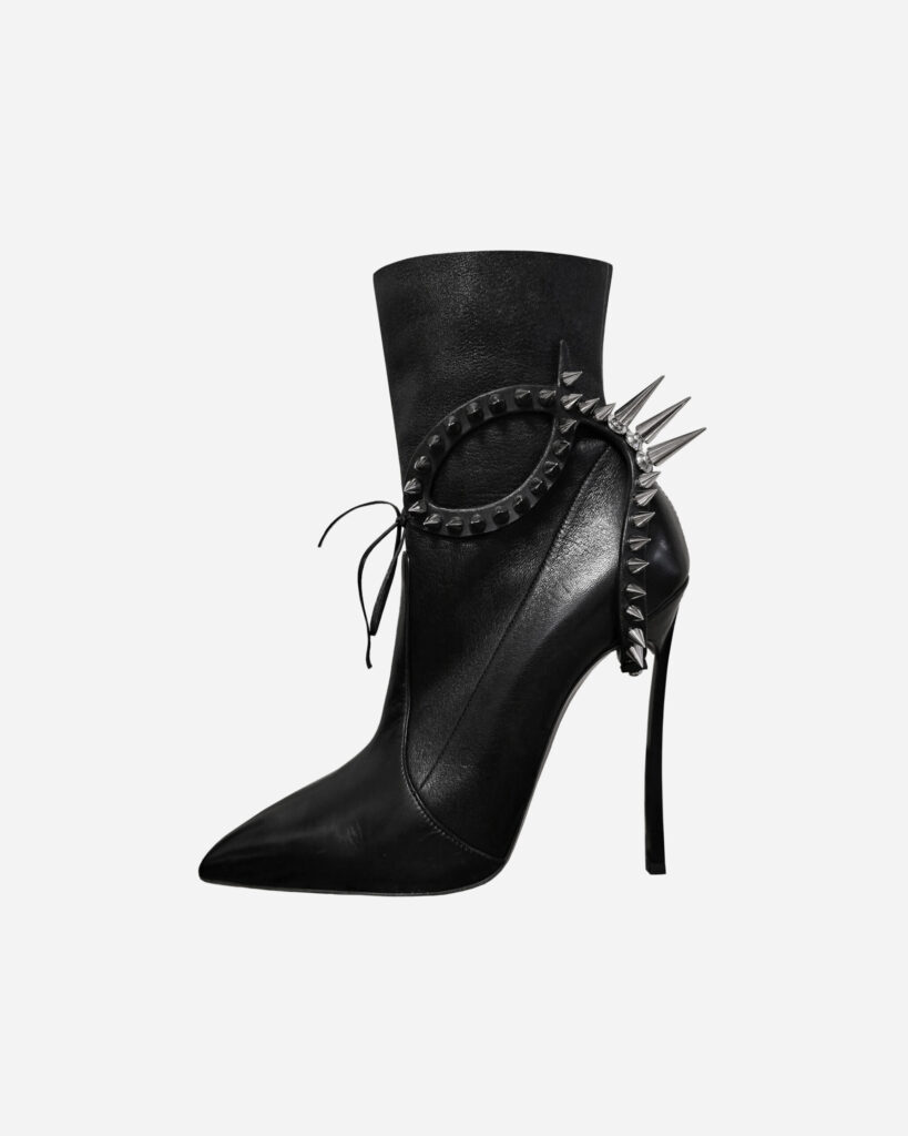 For the supreme female supervillain who doesn’t just walk into a room—she conquers it. This avant-garde shoe harness coils around your ankle like a luxurious leather viper, hand-sculpted to seduce and strike in a single glance. Forged with meticulous craftsmanship and fanged with polished metal spikes, SERPENT isn’t just an accessory—it’s a weapon…