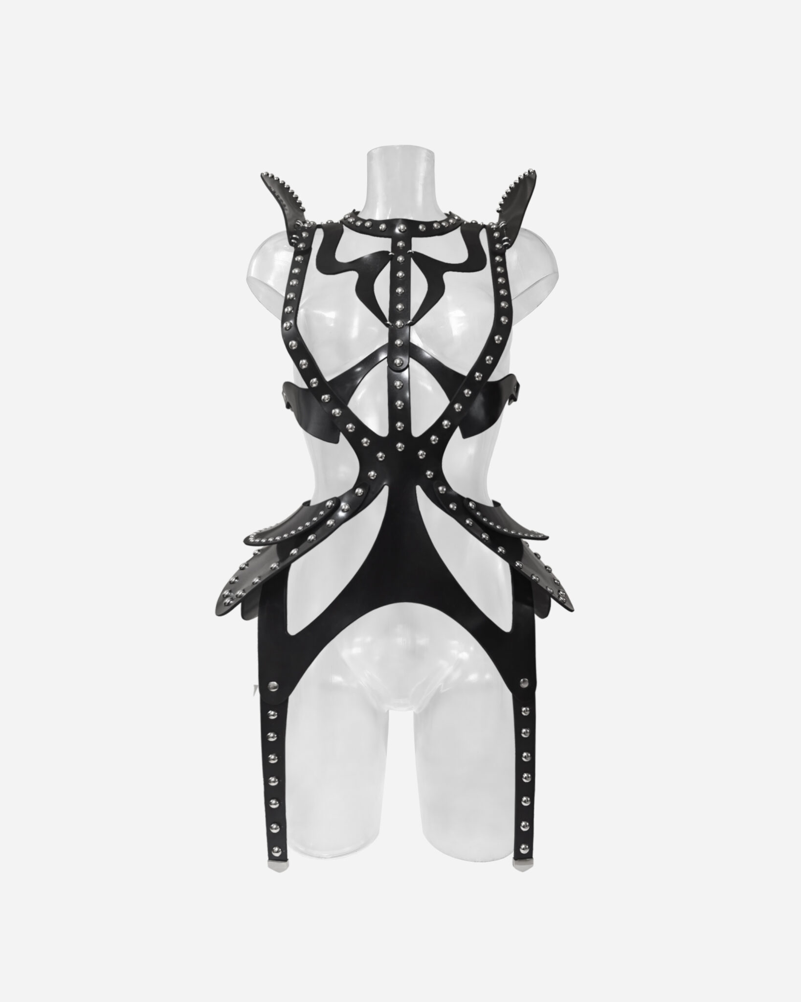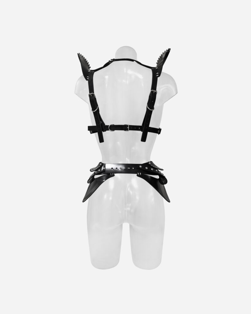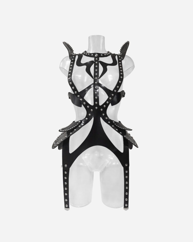 Forged for the female supervillain from another world, the SYMBIOTE isn’t worn—it claims you. Constructed from obsidian-black, premium leather or rubber and adorned with my signature metal stitching, this piece slithers over the body like dark liquid matter, awakening something… deep. Bold shoulder architecture commands fear before a word is…